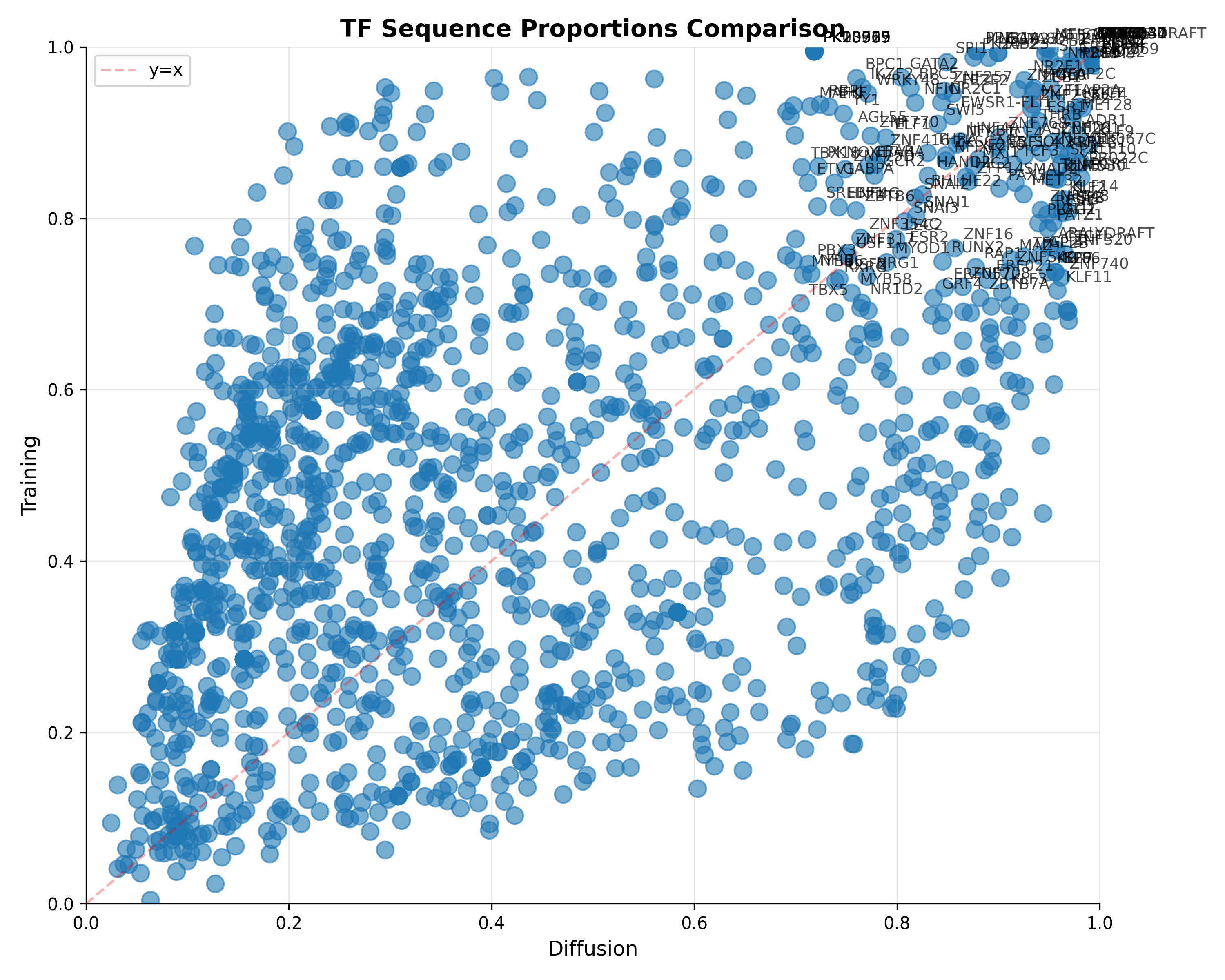 So let’s search for TFs and H3K27ac and H3K3me1 traits in our generated sequences. The TFs can be found screening different position frequency matrices (PFMs) against the generated and test sequences to see whether they share the same composition of TFs, while the Histone traits can be found using a DL model like Enformer. For the PFMs, I downloaded the human (redundant) collection from JASPAR.